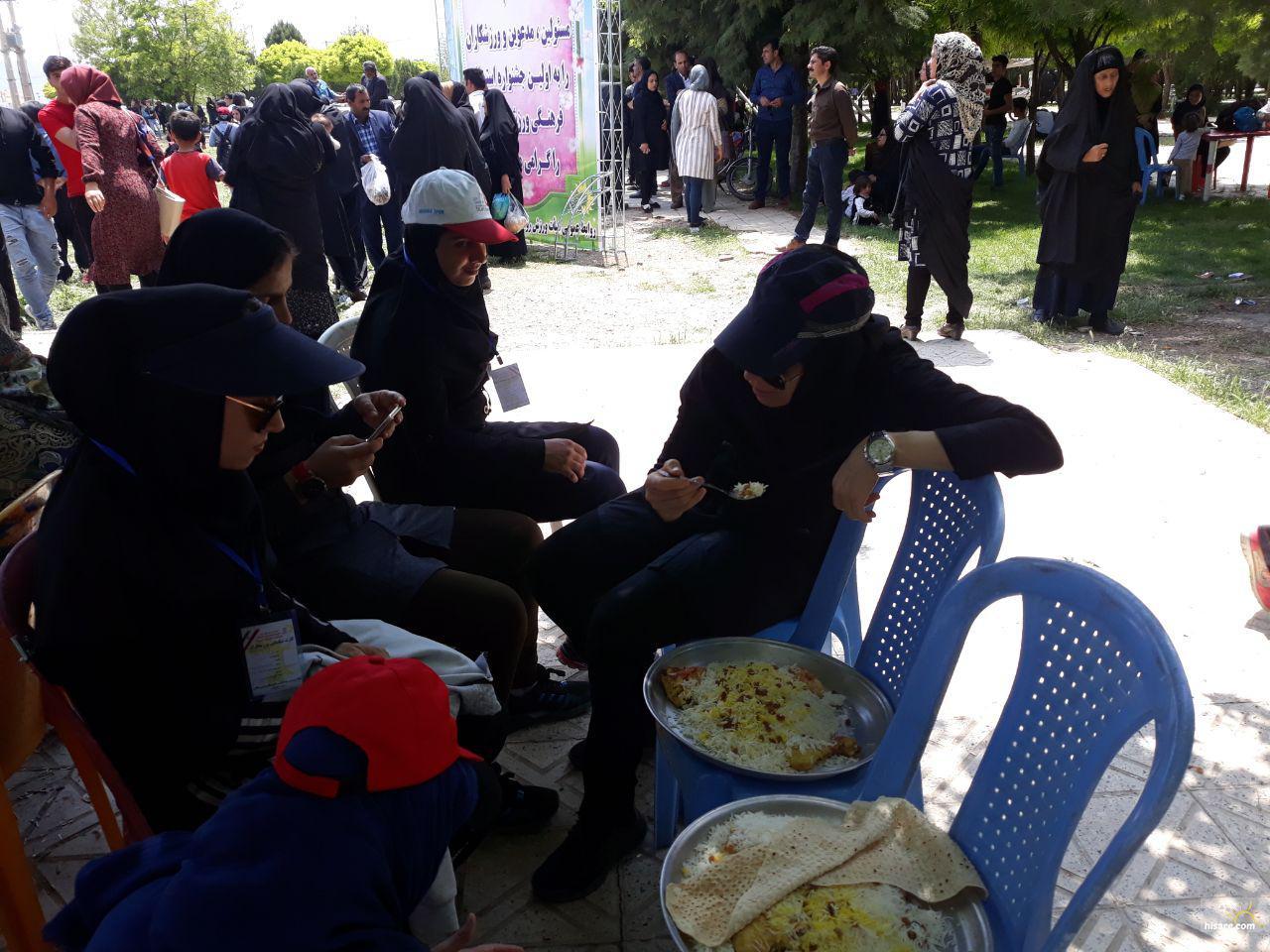 ظهر تعدادی از خانمهای داور مسابقات را دیدم که مجمع(ظرف غذا) بدست دنبال جایگاهی میگردند تا بتوانند نهار خود را میل کنند، اما نهایتا چند صندلی پلاستیکی نقش میز را برای آنها بازی میکند وآنهم بخاطر آفتاب مجبورند وسط جمعیت و زیردرختان نهار خود را نیمه کاره رها کنند.